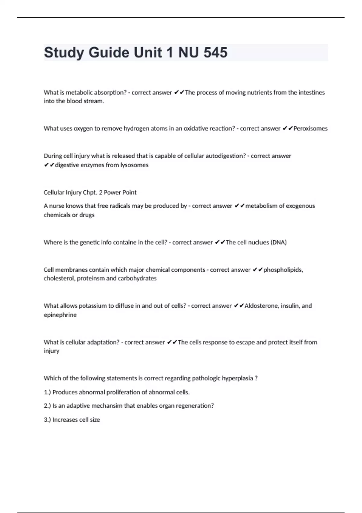 Study Guide Unit 1 NU 545 questions with verified solutions