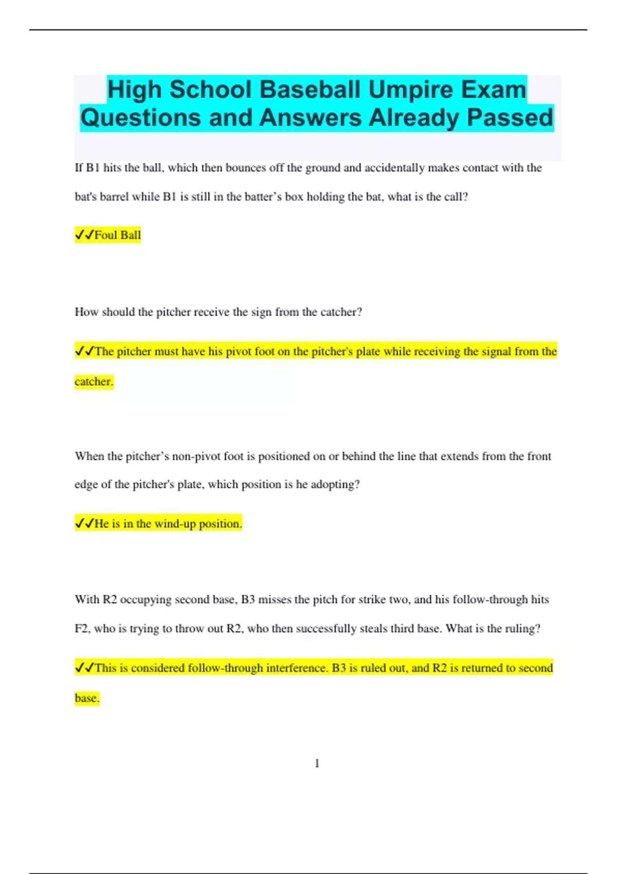 High School Baseball Umpire Exam Questions and Answers Already Passed