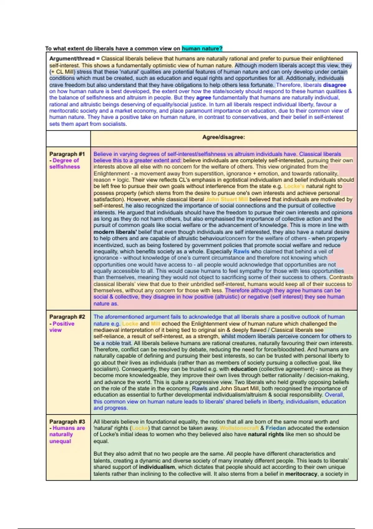 Paragraph #1 Believe in varying degrees of self-interest/selfishness vs altruism individuals have. Classical liberals