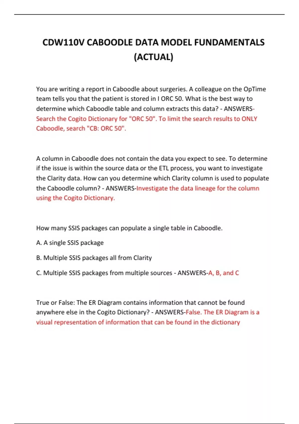 CDW110V CABOODLE DATA MODEL FUNDAMENTALS (ACTUAL) 2024 QUESTIONS AND ANSWERS