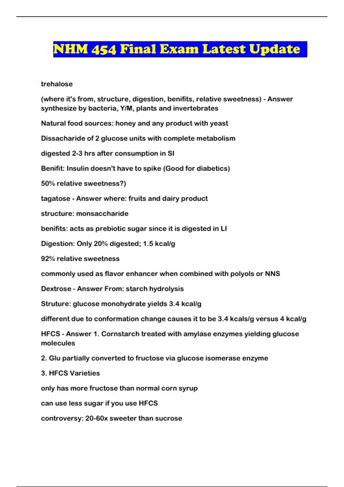 NHM 454 Final Exam Latest Update