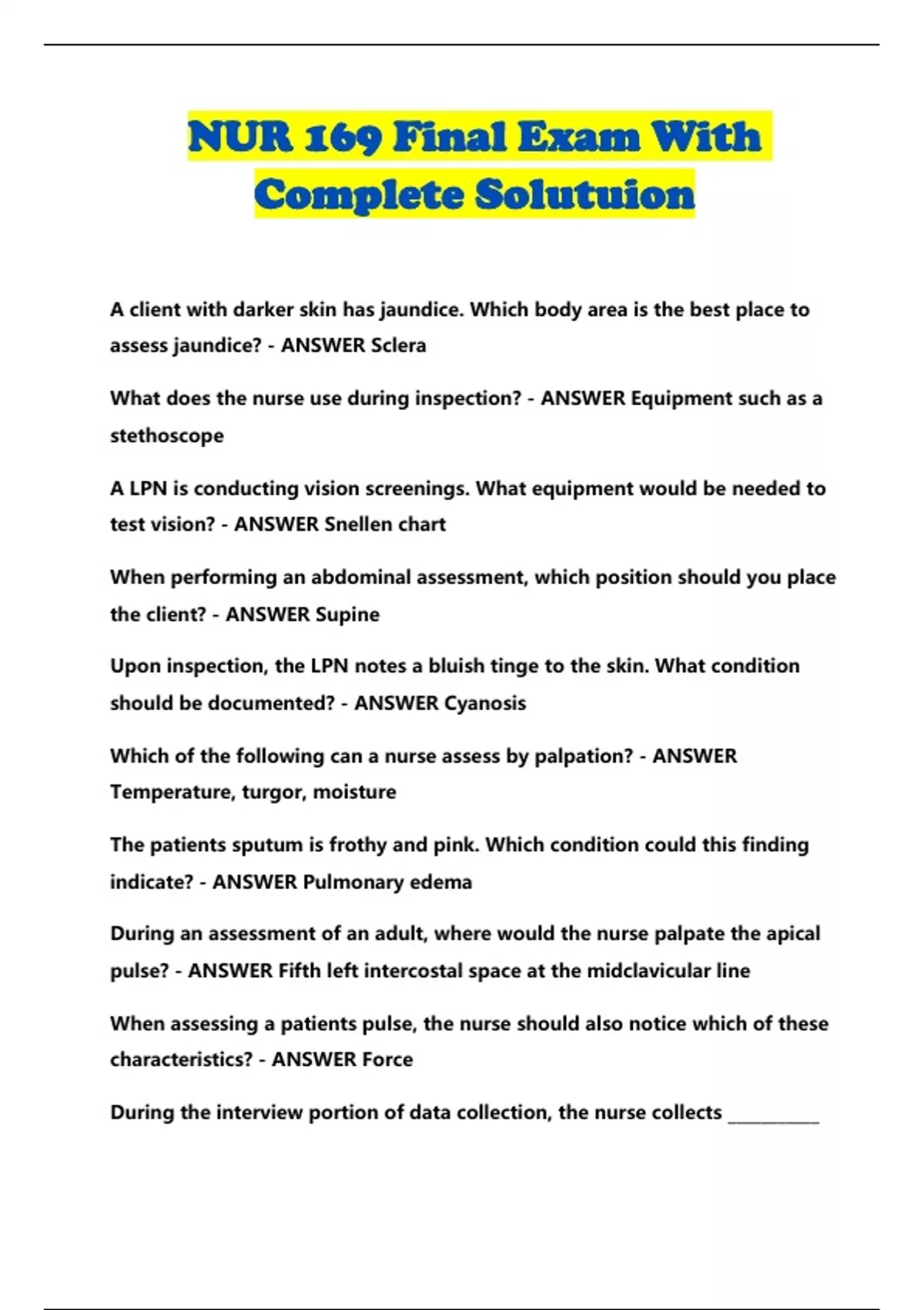 NUR 169 FULL PACKAGE DEAL WITH SOLUTION