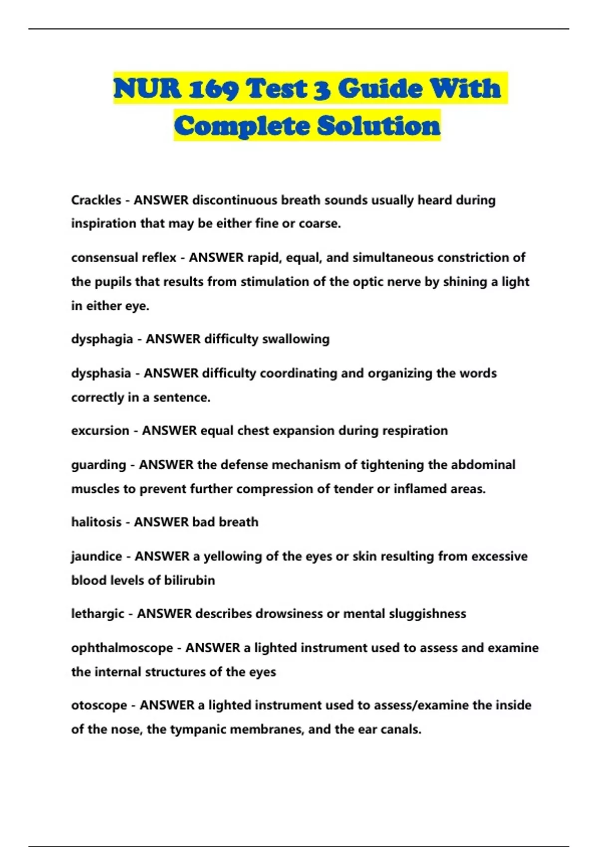NUR 169 FULL PACKAGE DEAL WITH SOLUTION