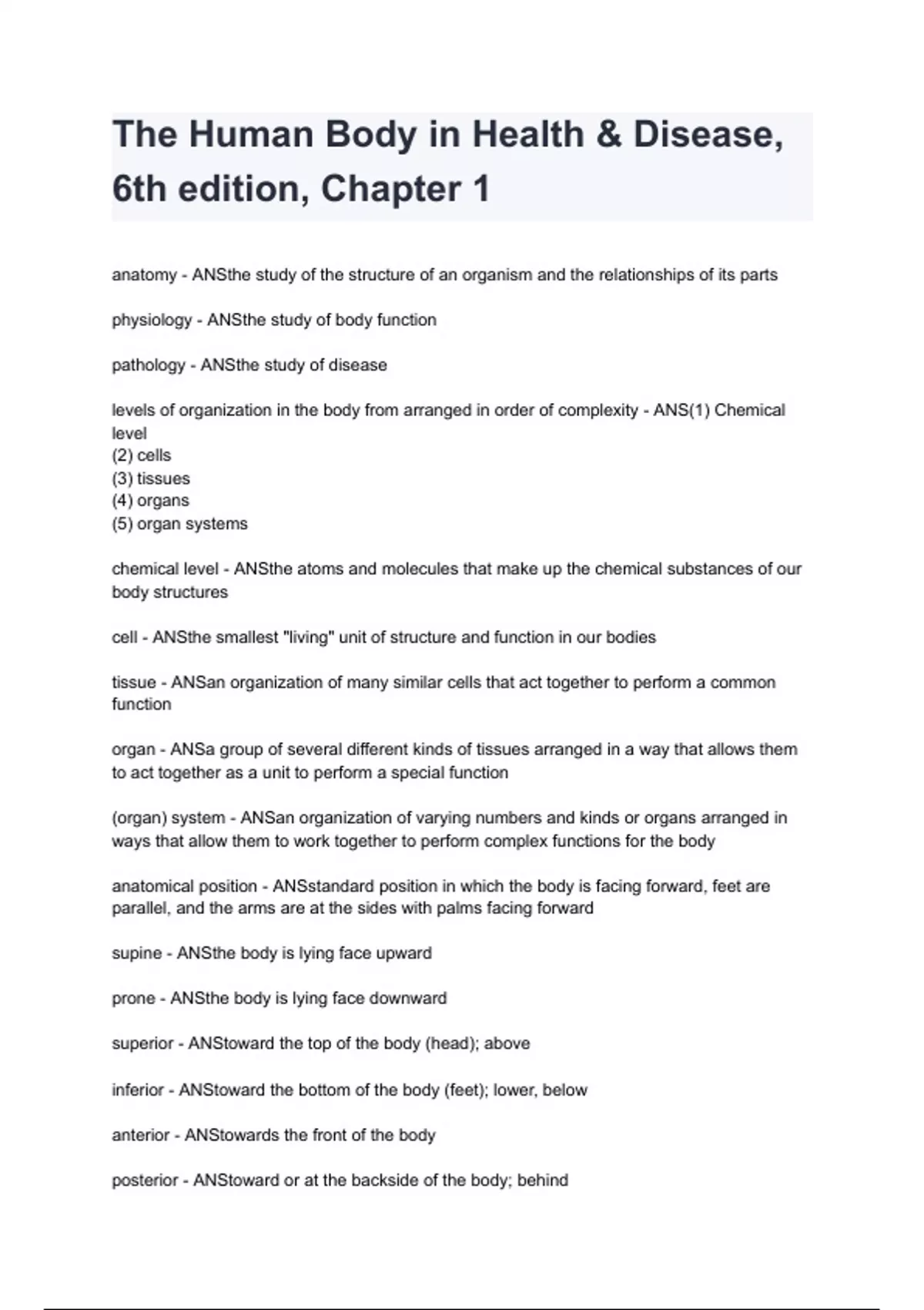 The Human Body in Health & Disease, 6th edition, Chapter 1