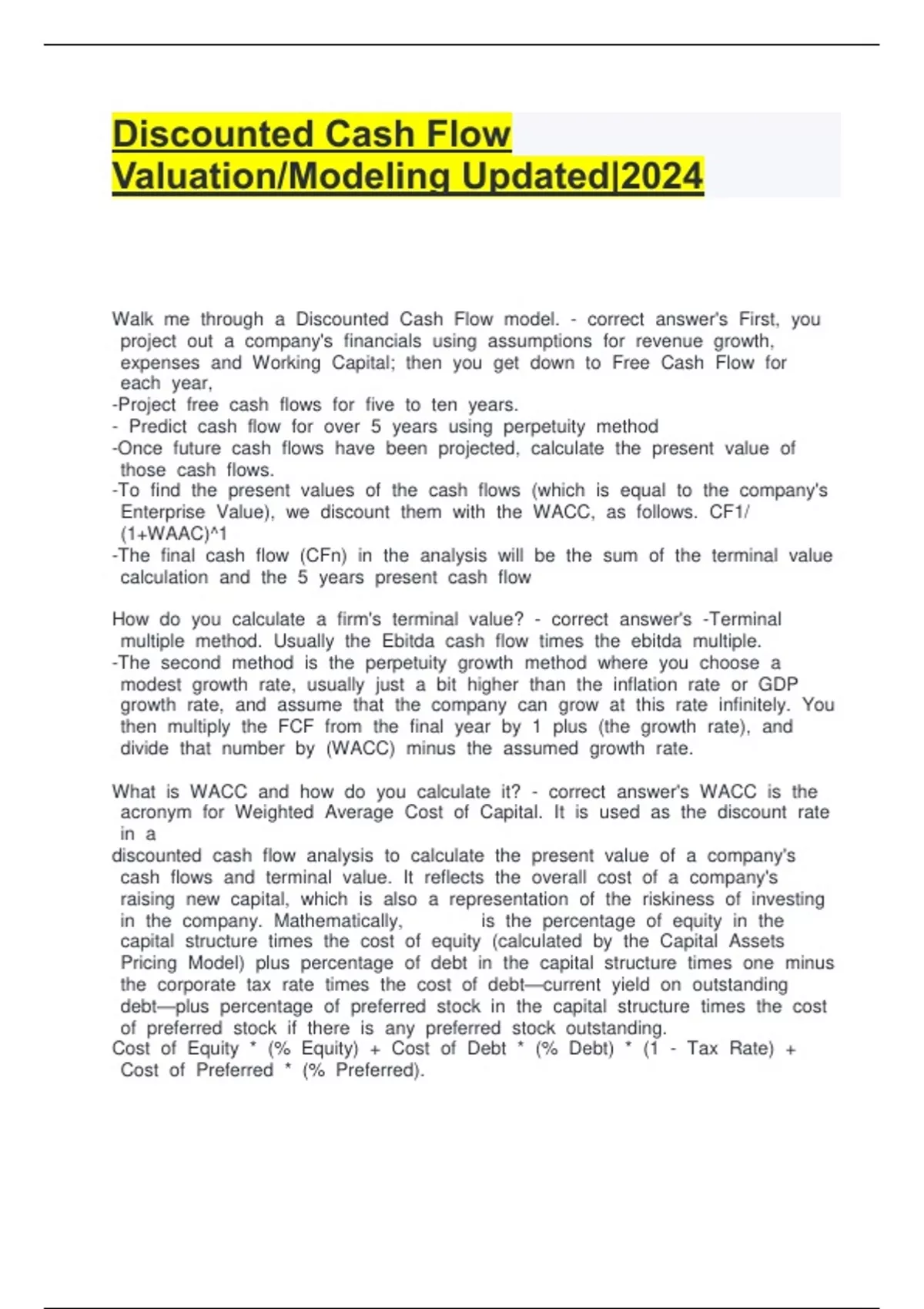 Discounted Cash Flow Valuation/Modeling Updated|2024