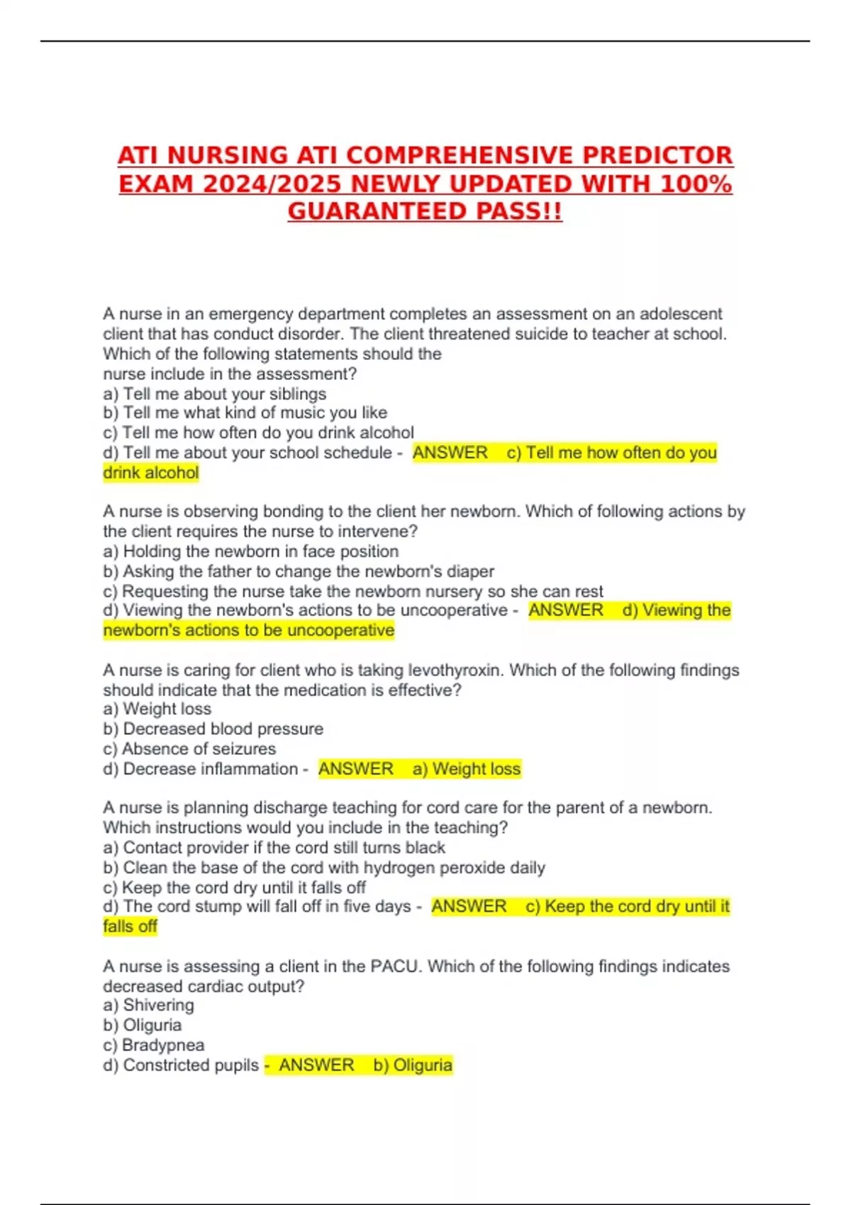 - ATI NURSING ATI COMPREHENSIVE PREDICTOR