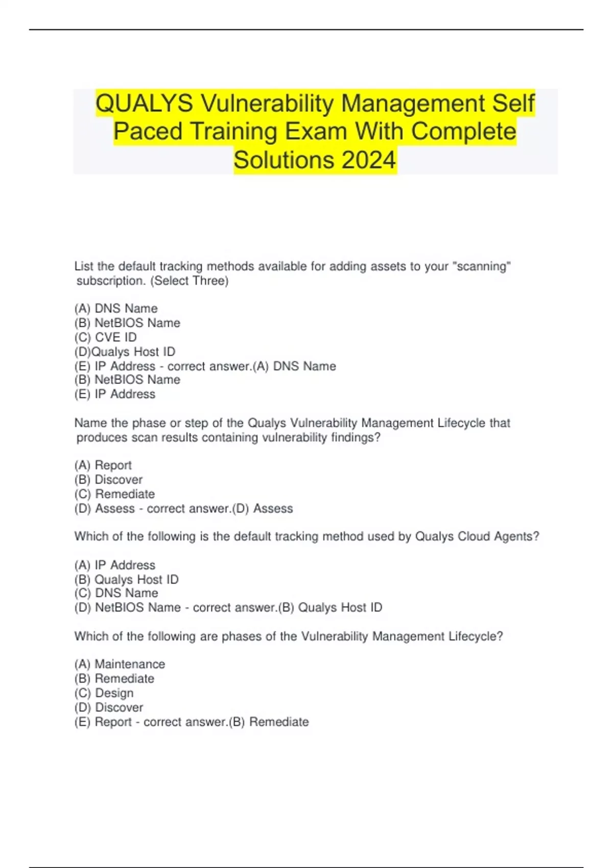 QUALYS Vulnerability Management Self Paced Training Exam With Complete Solutions 2024