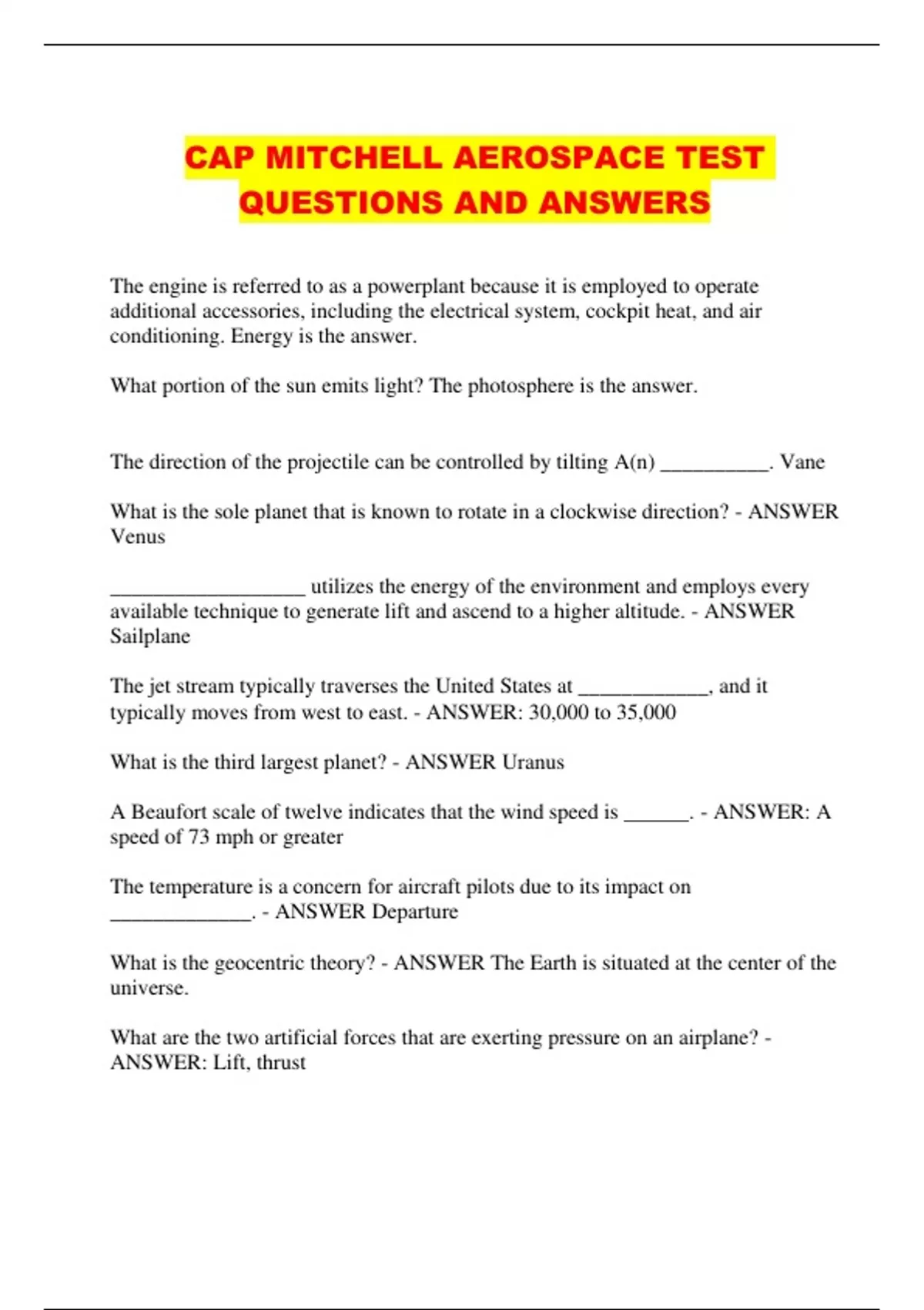 CAP MITCHELL AEROSPACE TEST QUESTIONS AND ANSWERS...