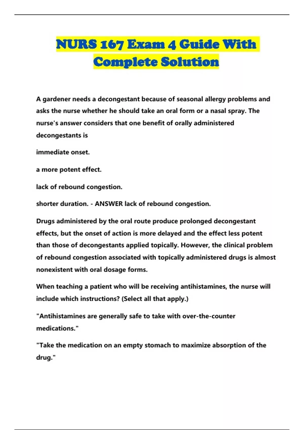 nurs 167 exam 4 guide with complete solution