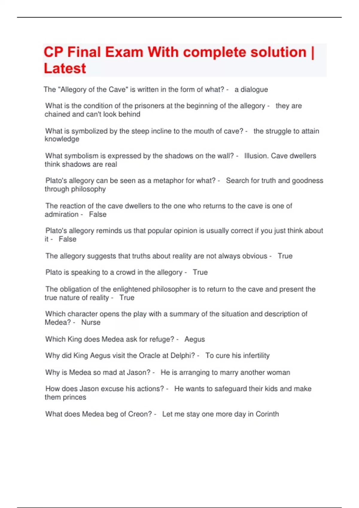 CP Final Exam With complete solution | Latest