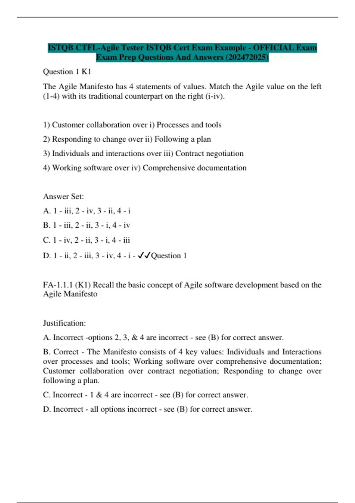 ISTQB CTFL-Agile Tester ISTQB Cert Exam Example - OFFICIAL Exam Exam Prep Questions And Answers ()