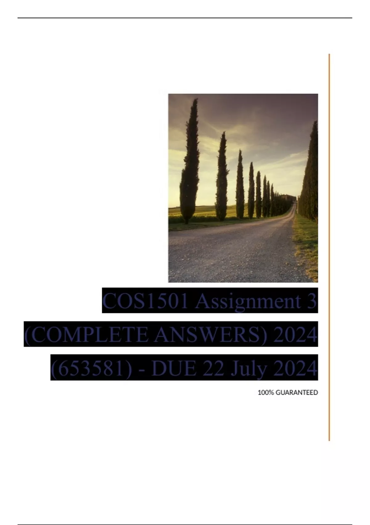 COS1501 Assignment 3 (COMPLETE ANSWERS) 2024 (653581) - DUE 22 July 2024