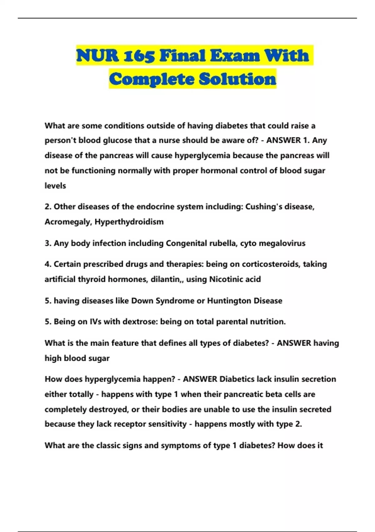 NUR 165 Final Exam With Complete Solution...
