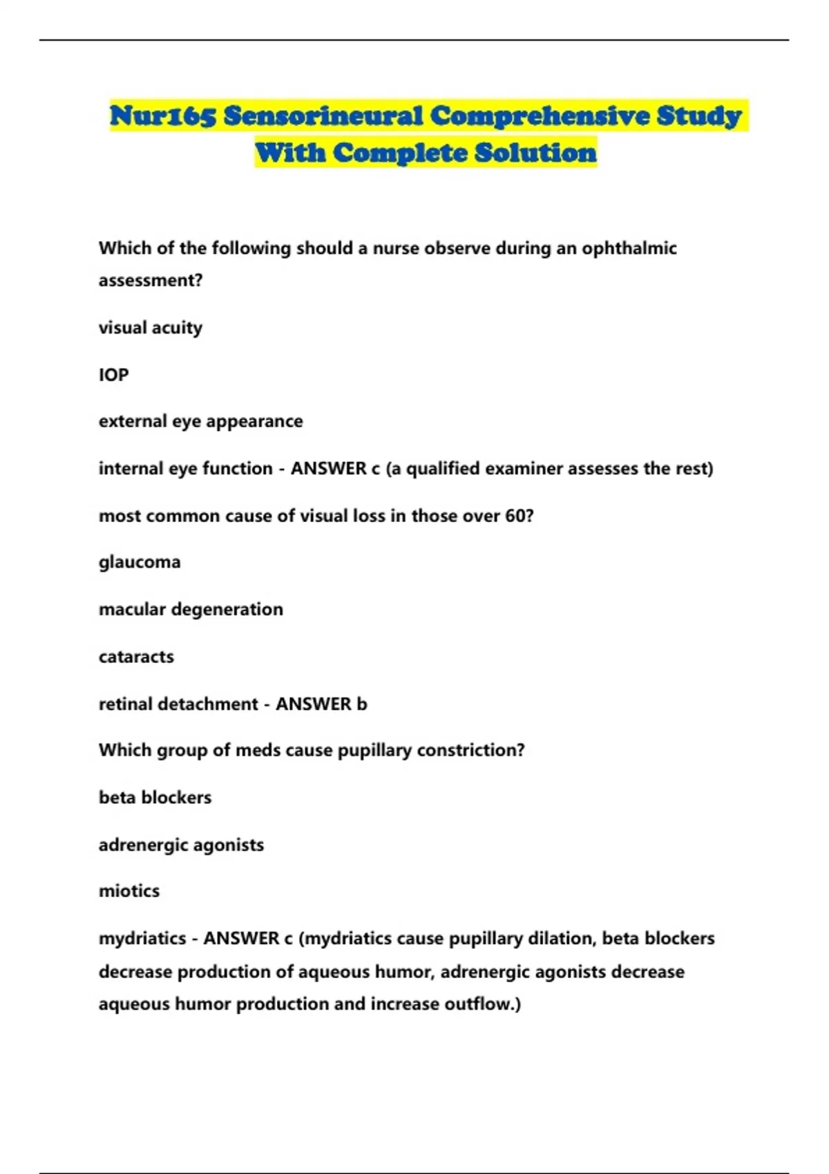 Nur165 Sensorineural Comprehensive Study With Complete Solution...