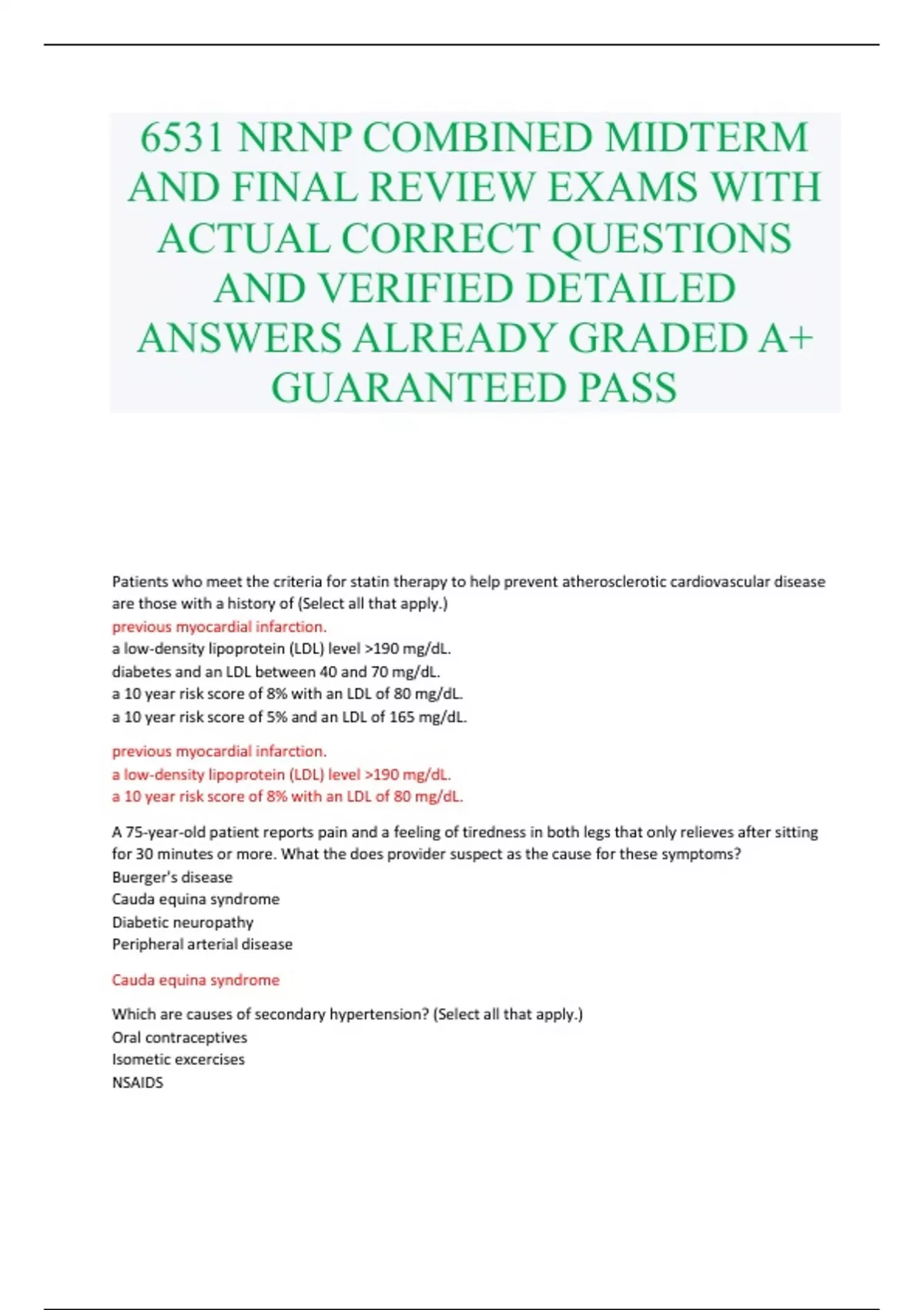 6531 NRNP COMBINED MIDTERM AND FINAL REVIEW EXAMS WITH ACTUAL CORRECT QUESTIONS AND VERIFIED DETAILED ANSWERS ALREADY GRADED A+ GUARANTEED PASS