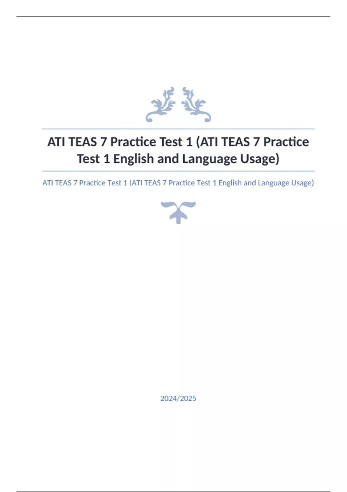 ATI TEAS 7 Practice Test 1 Question and answer verified to pass