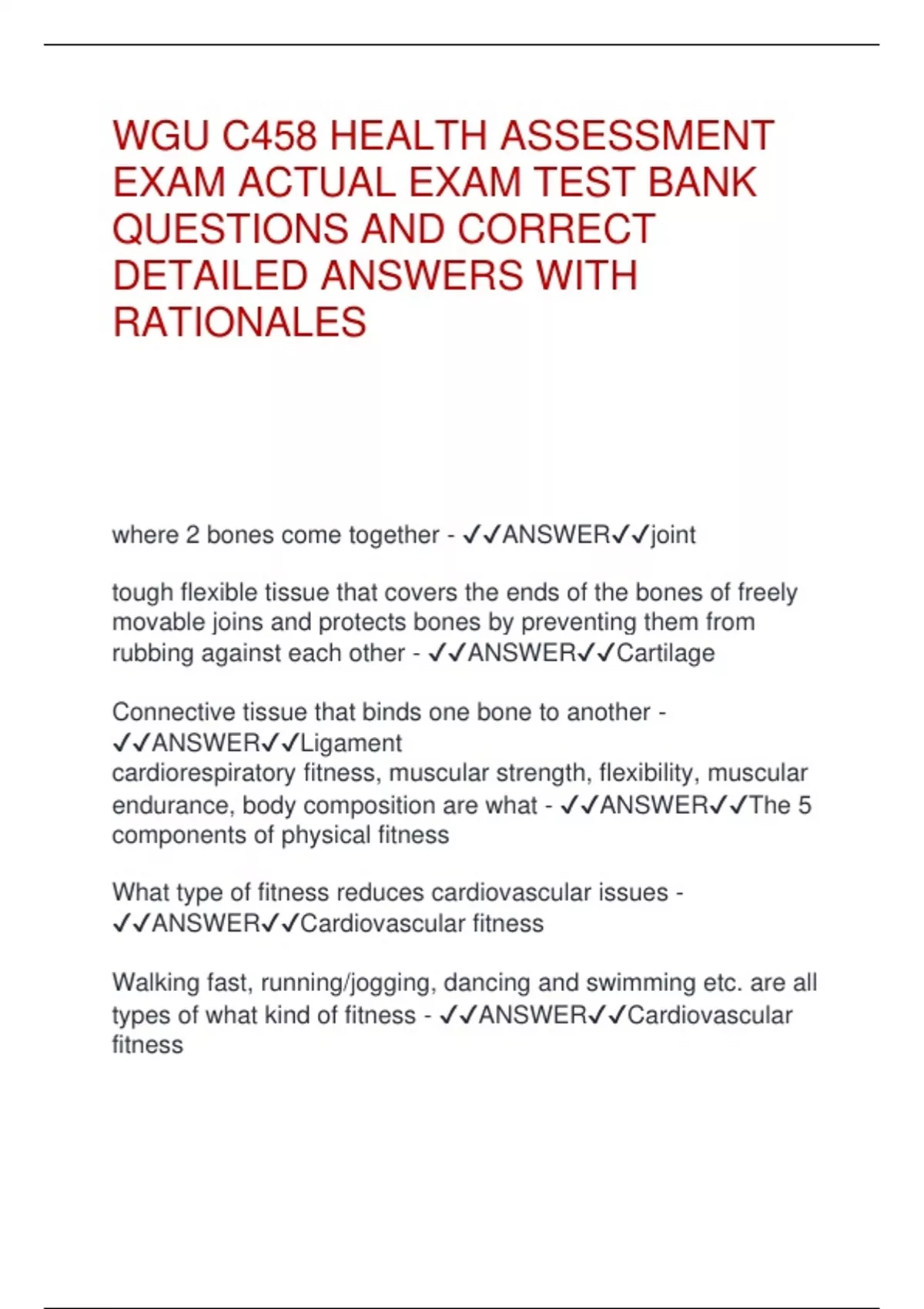 WGU C458 HEALTH ASSESSMENT EXAM ACTUAL EXAM TEST BANK QUESTIONS AND CORRECT DETAILED ANSWERS WITH RATIONALES