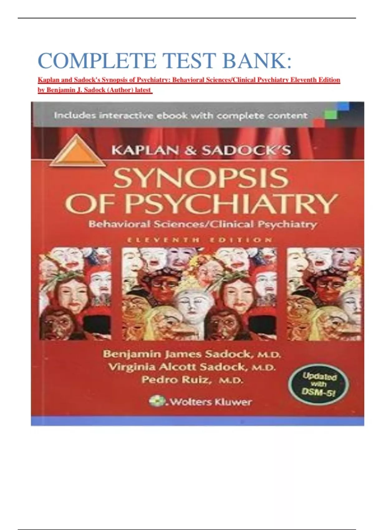 COMPLETE TEST BANK: Kaplan and Sadock's Synopsis of Psychiatry: Behavioral Sciences/Clinical Psychiatry Eleventh Edition by Benjamin J. Sadock (Author) latest