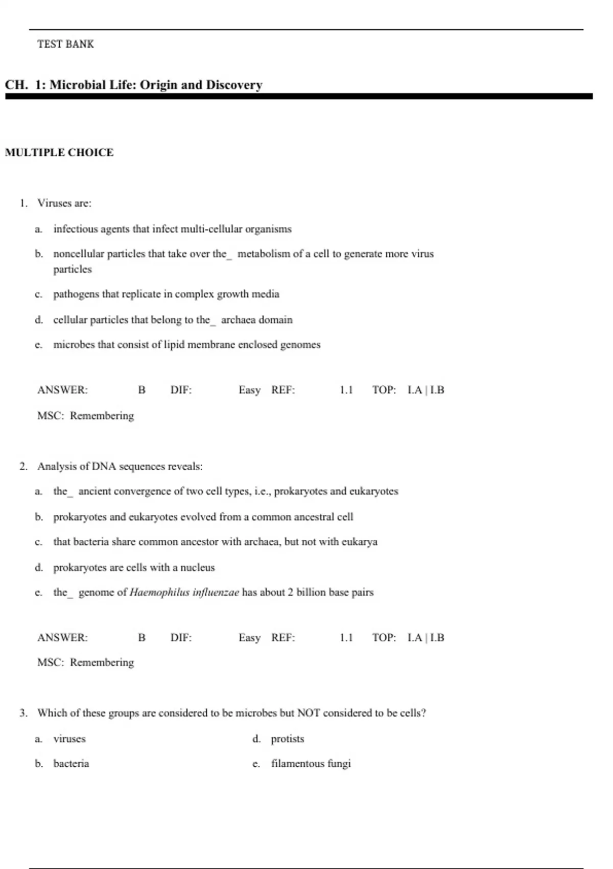 Test Item File- Practice Test Bank - Microbiology,Slonczewski,3e