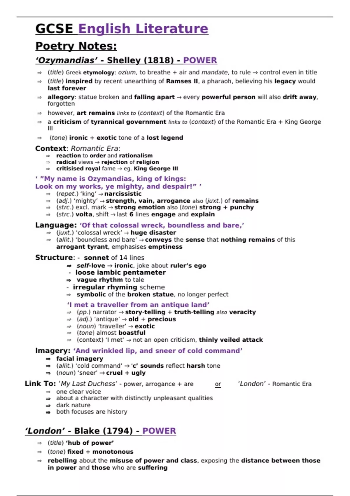 Link To: ‘My Last Duchess’ - power, arrogance + are or ‘London’ - Romantic Era