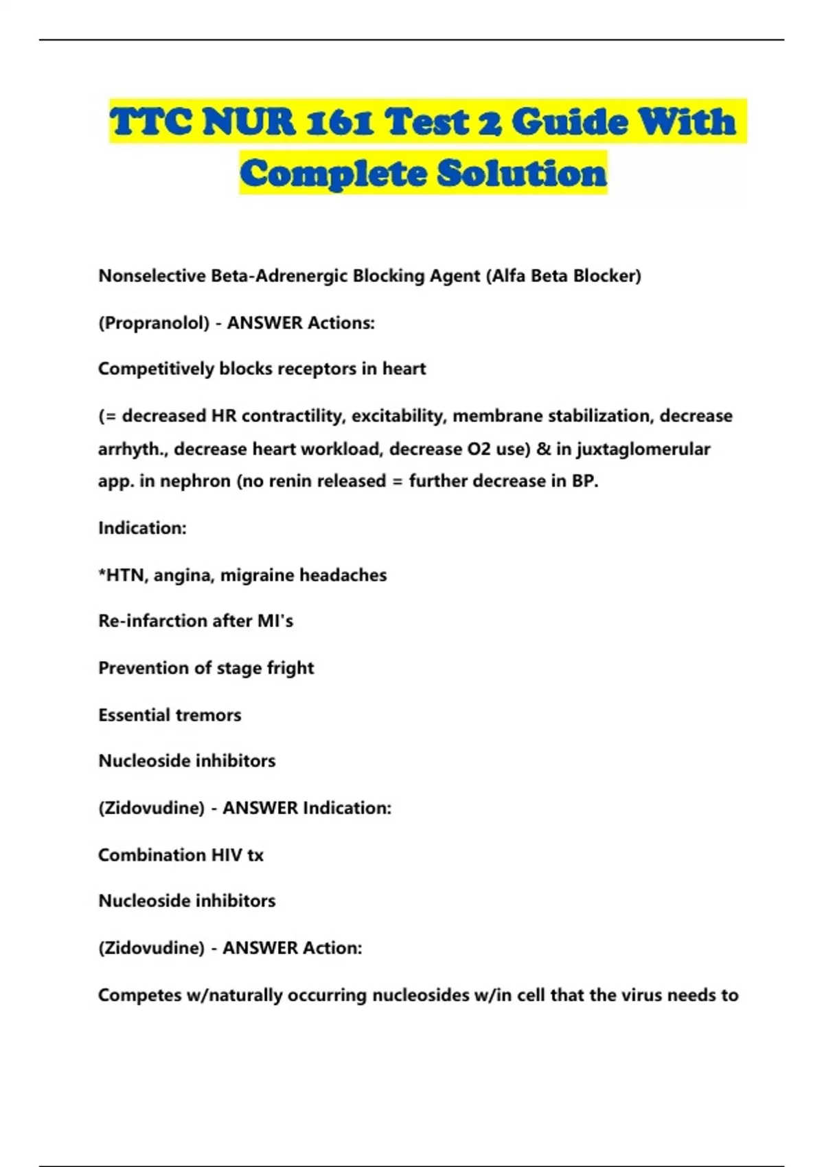 ttc nur 161 test 2 guide with complete solution
