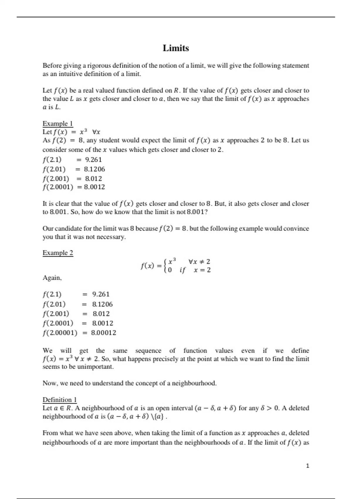 Let 𝑎 ∈ 𝑅. A neighbourhood of 𝑎 is an open interval (𝑎 − 𝛿, 𝑎 + 𝛿) for any 𝛿 > 0. A deleted