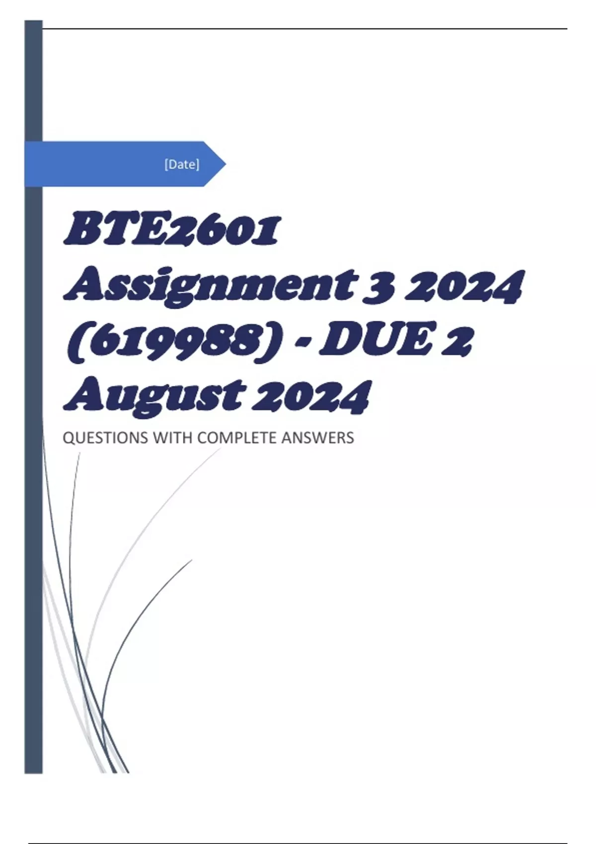 QUESTIONS AND ANSWERS BTE2601 Assignment 3 2024 (619988) - DUE 2 August 2024