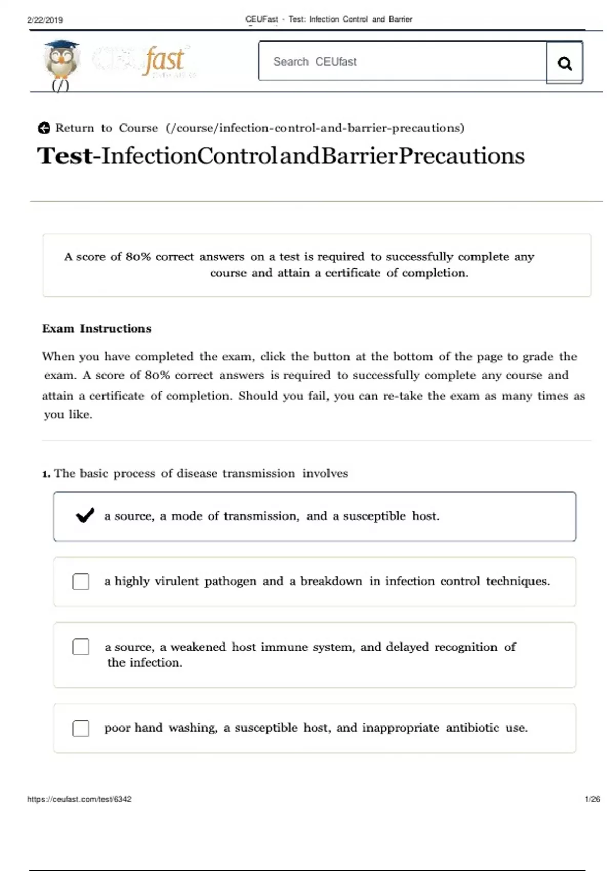 CEUFast - Test_ Infection Control and Barrier Precautions Questions and Answers 100% Correct | Latest Update 2024
