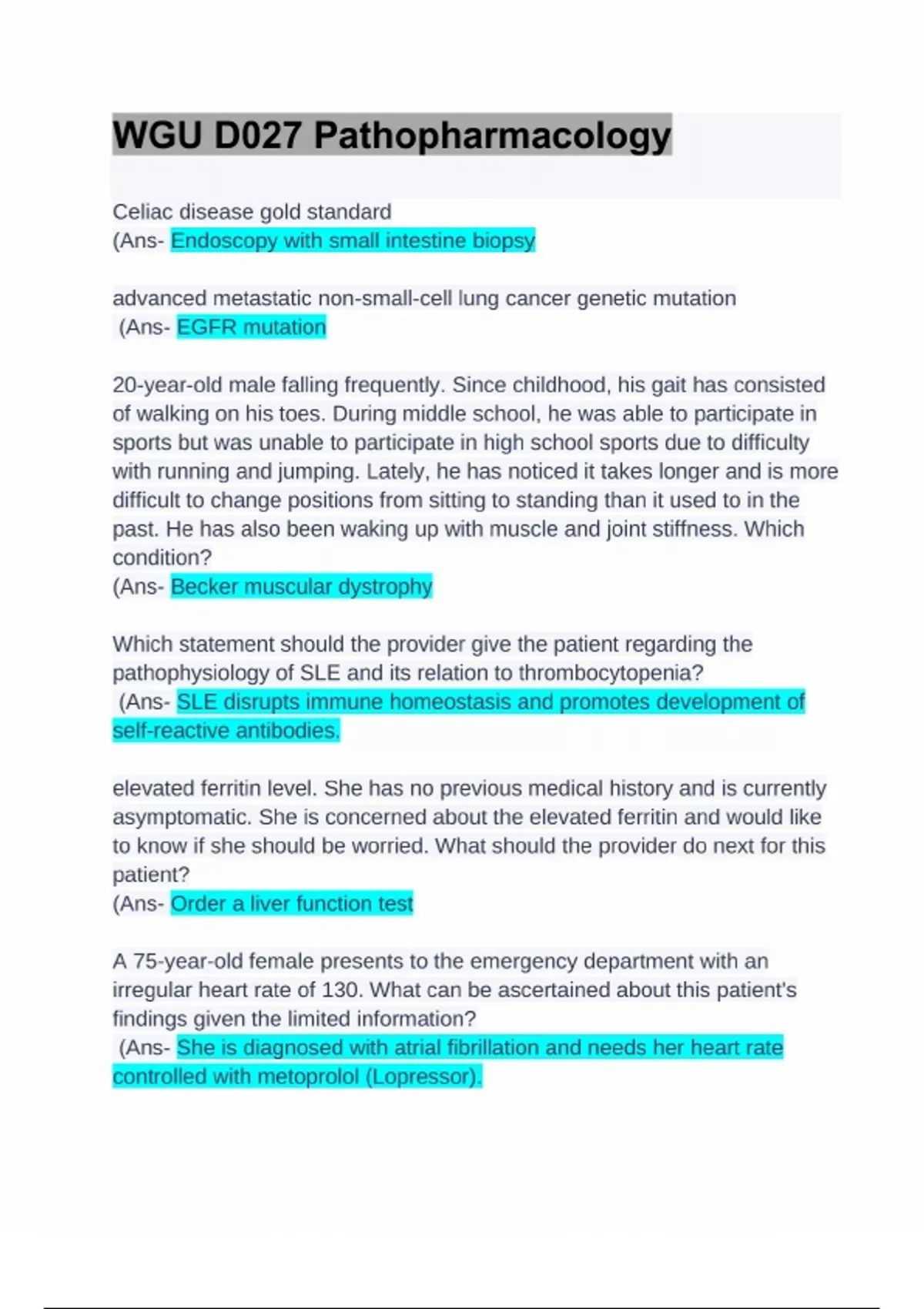 WGU D027 Pathopharmacology. QUESTIONS WITH 100% VERIFIED ANSWERS. GRADED A+