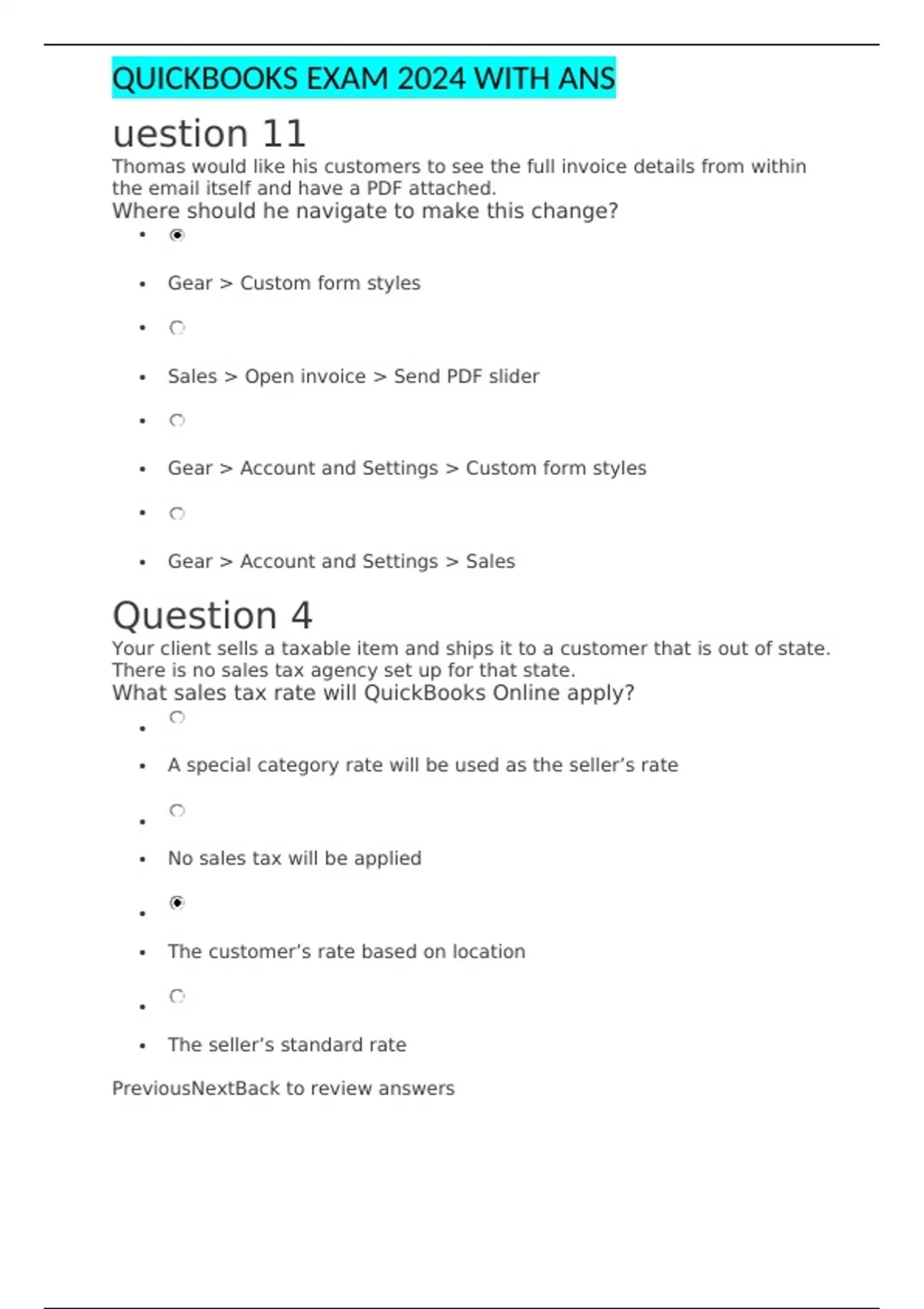 , QUICKBOOKS EXAM 2024 WITH ANS