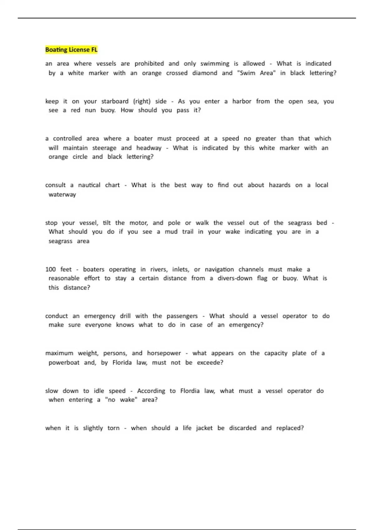 Exam of 8 pages for the course Boating License FL at Boating License FL (Boating License FL)