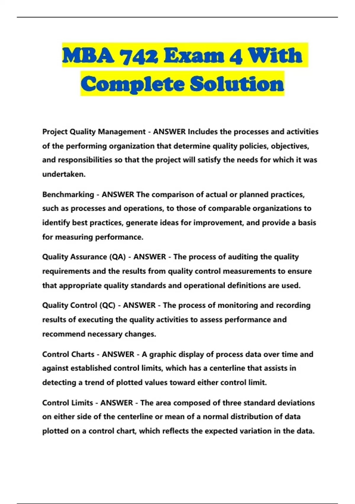 MBA 742 BUNDLED EXAMS WITH SOLUTION