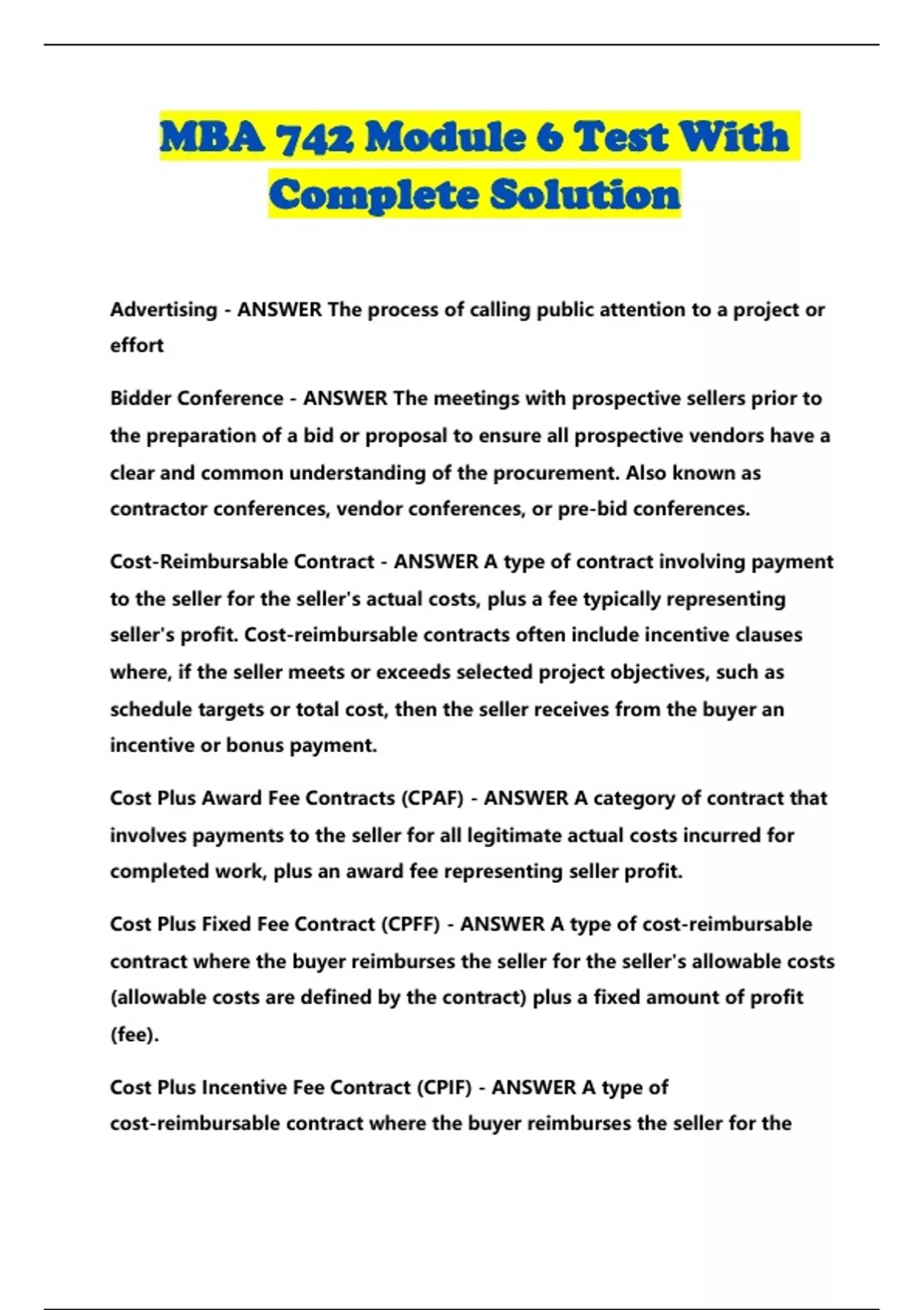 MBA 742 BUNDLED EXAMS WITH SOLUTION