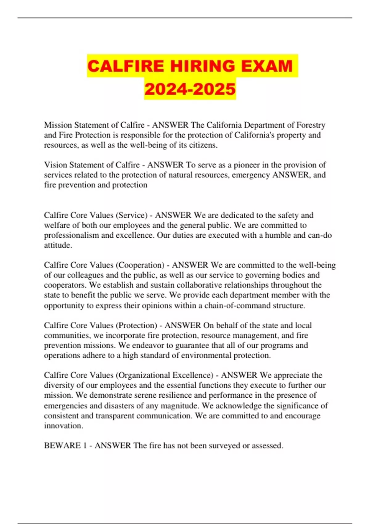 CALFIRE CURRENT BUNDLED EXAMS WITH QUESTIONS AND VERIFIED ANSWERS
