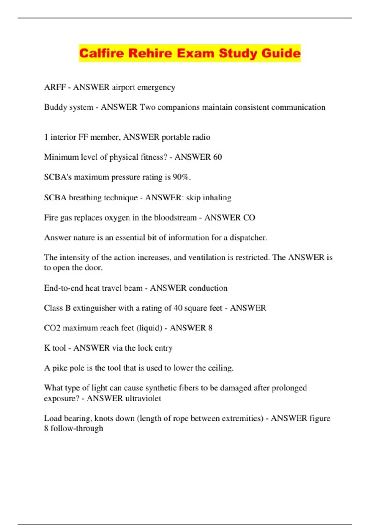 Calfire Rehire Exam Study Guide...