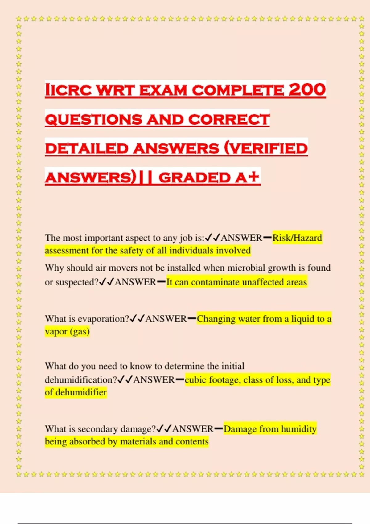iicrc wrt exam complete 200 questions and correct