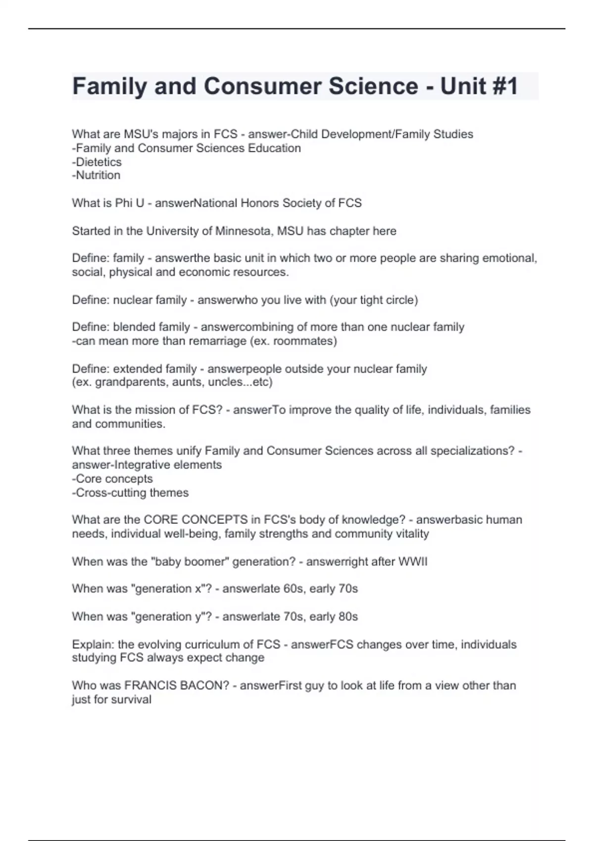 Family and Consumer Science - Unit -1.Exams graded A+ with complete solutions