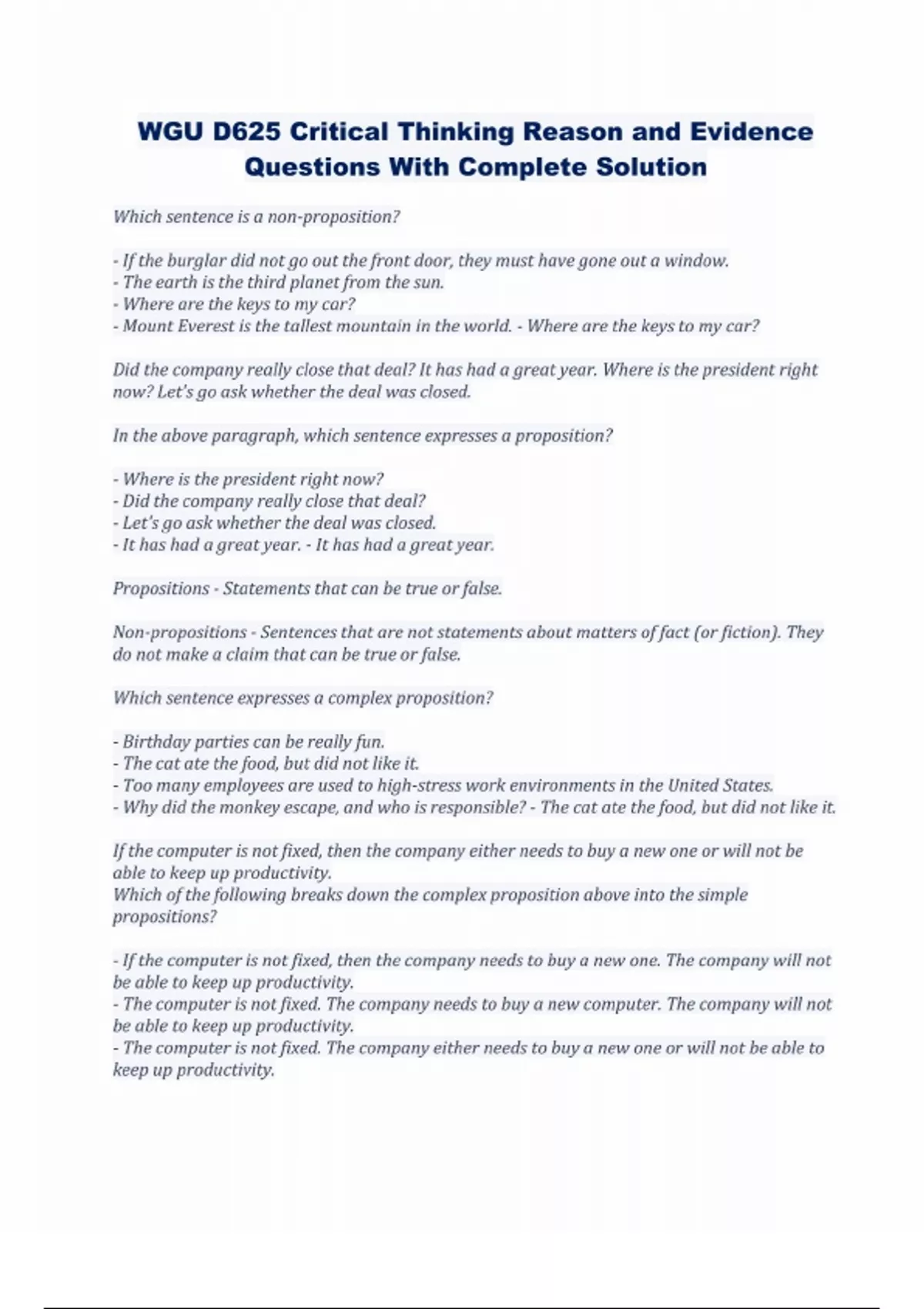 WGU D625 Critical Thinking Reason and Evidence Questions With Complete Solution 2023/2024
