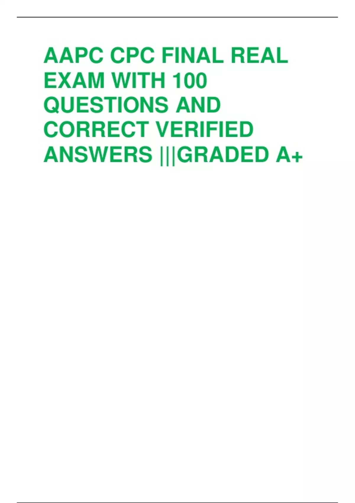 AAPC CPC FINAL REAL EXAM WITH 100 QUESTIONS AND CORRECT VERIFIED ANSWERS |||GRADED A+