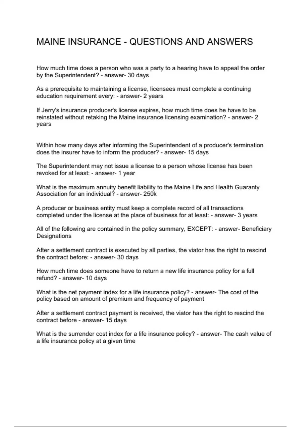 MAINE INSURANCE - QUESTIONS AND ANSWERS