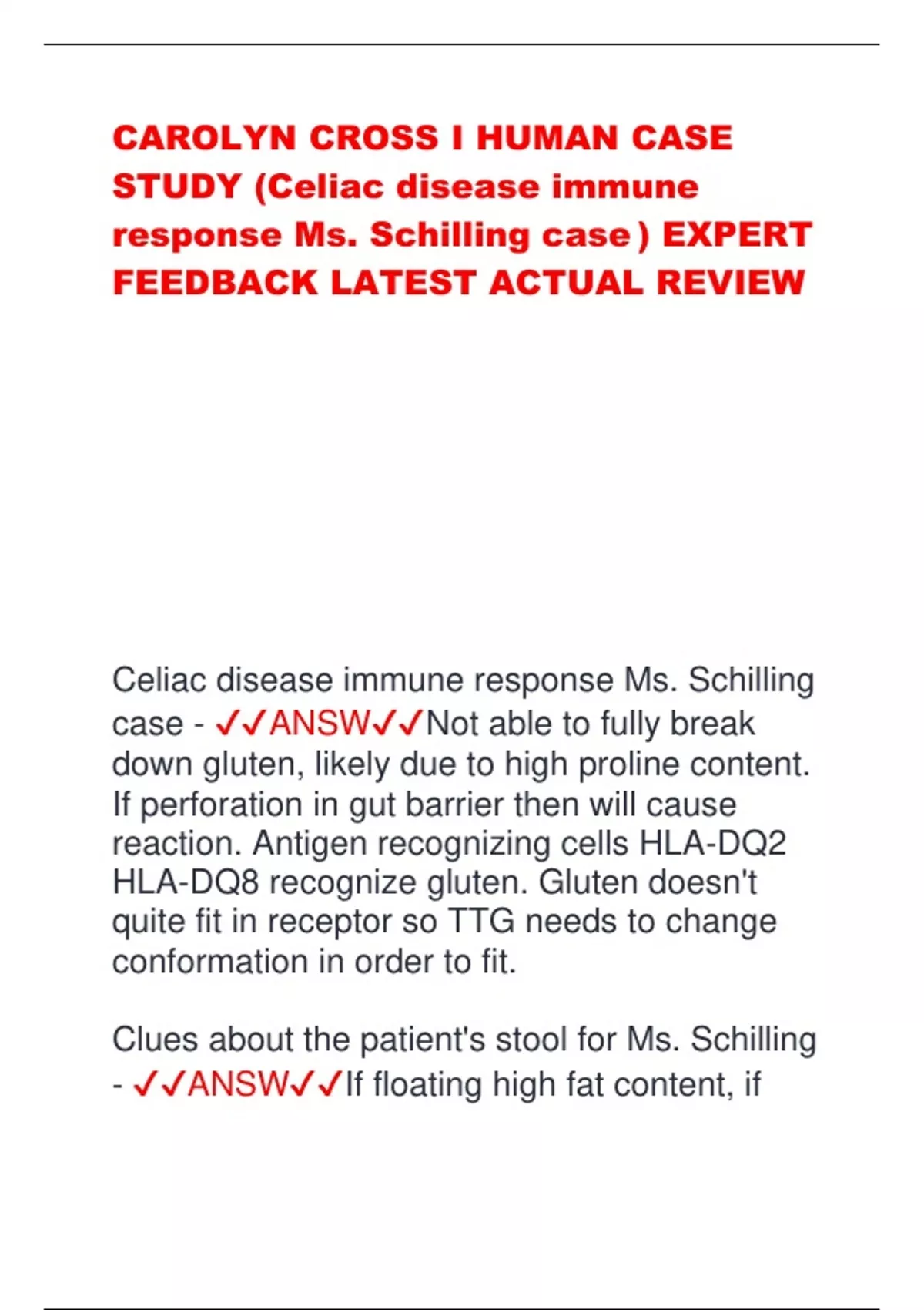 CAROLYN CROSS I HUMAN CASE STUDY (Celiac disease immune response Ms. Schilling case ) EXPERT FEEDBACK LATEST ACTUAL REVIEW