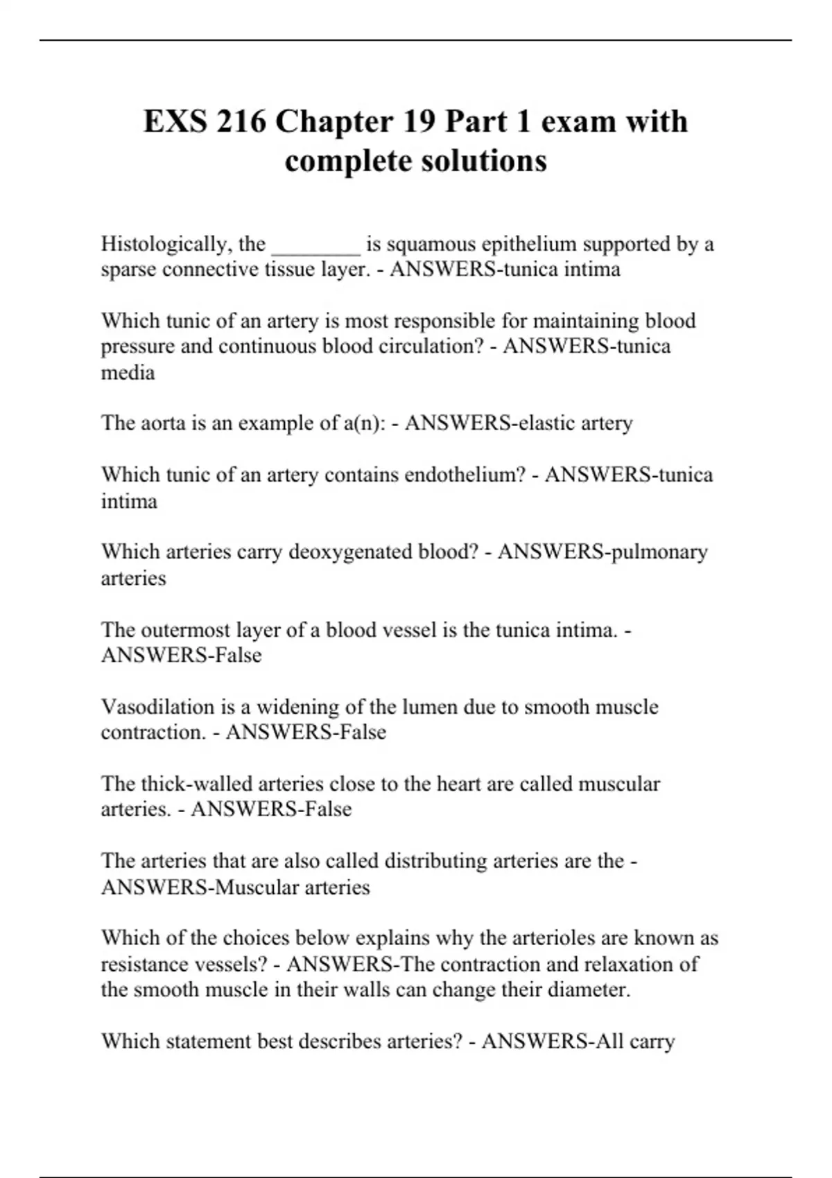 EXS 216 Chapter 19 Part 1 exam with complete solutions