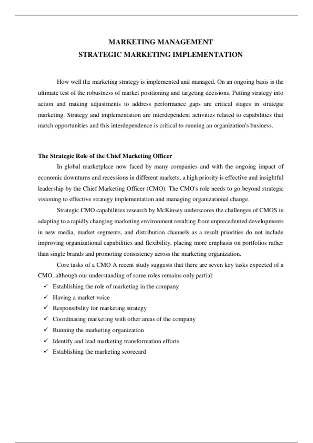Core tasks of a CMO A recent study suggests that there are seven key tasks expected of a