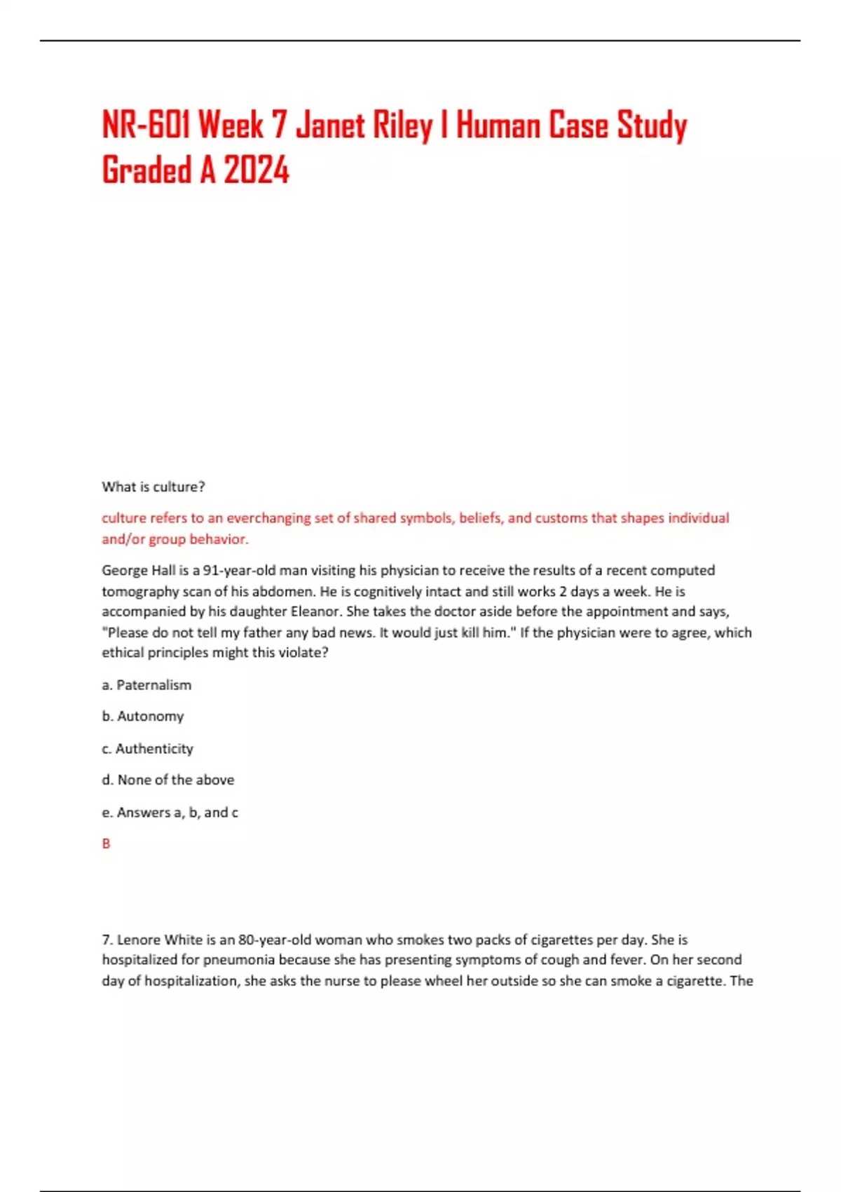 NR-601 Week 7 Janet Riley I Human Case Study Graded A 2024