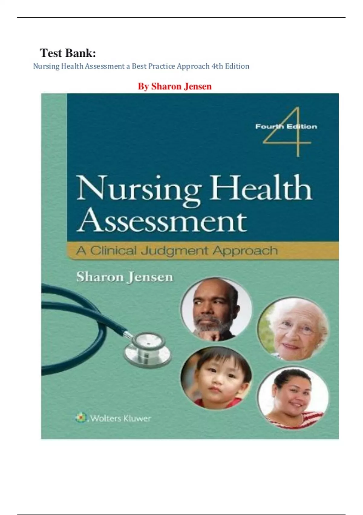 Test Bank: Nursing Health Assessment a Best Practice Approach 4th Edition By Sharon Jensen (NEWEST EDITION 2024)