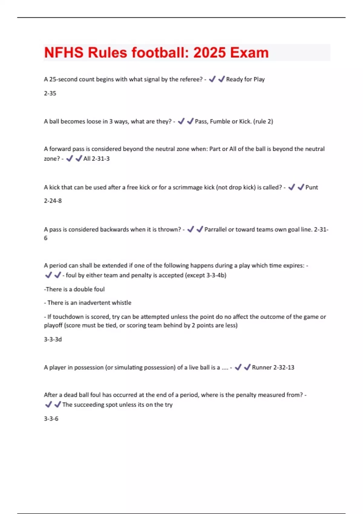 NFHS Rules football: 2025 Exam Questions And Answers Rated A+ New Update Assured Satisfaction
