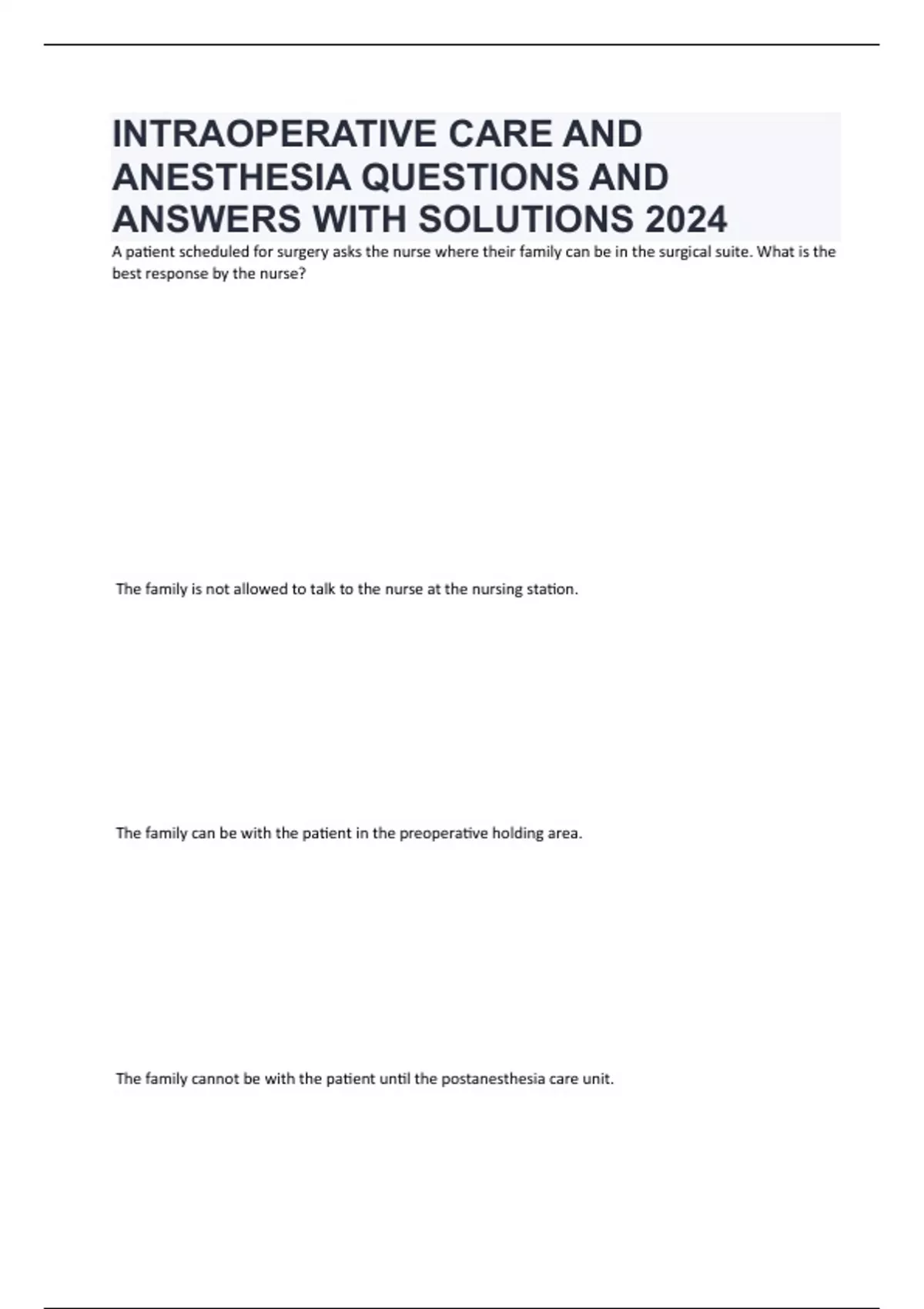 INTRAOPERATIVE CARE AND ANESTHESIA QUESTIONS AND ANSWERS WITH SOLUTIONS 2024