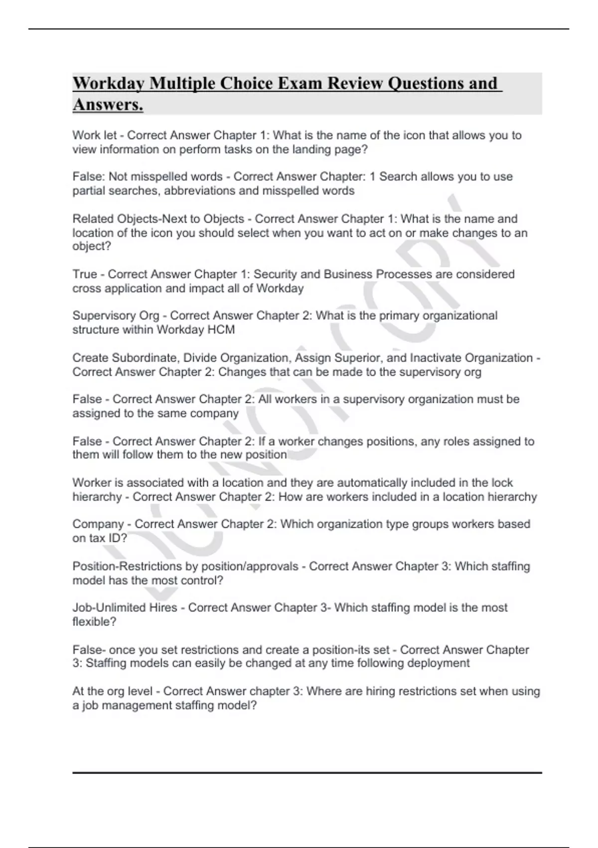 Workday Multiple Choice Exam Review Questions and Answers.Workday Multiple Choice Exam Review Questions and Answers.