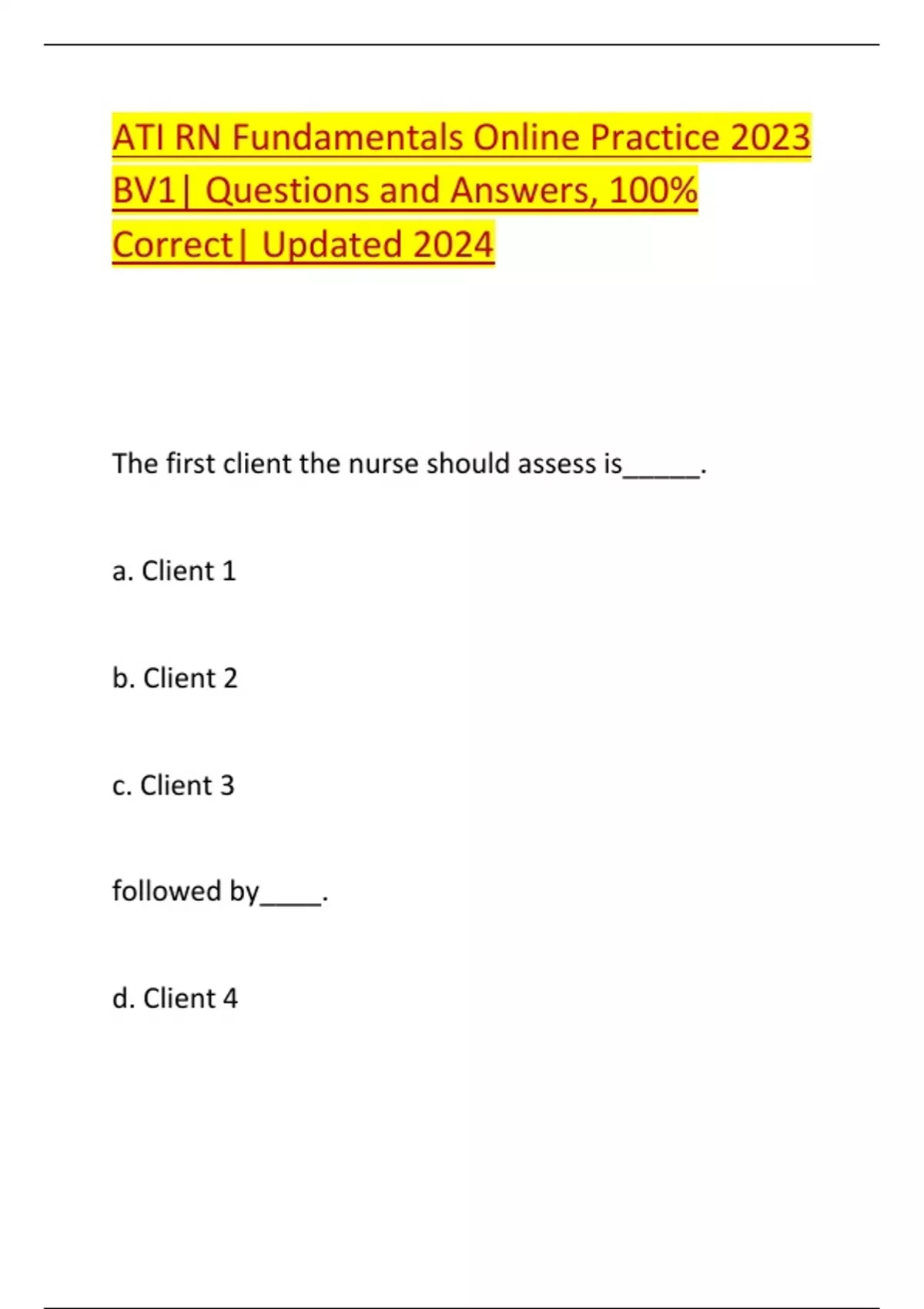 ATI RN Fundamentals Online Practice 2023 BV1| Questions and Answers, 100% Correct| Updated 2024