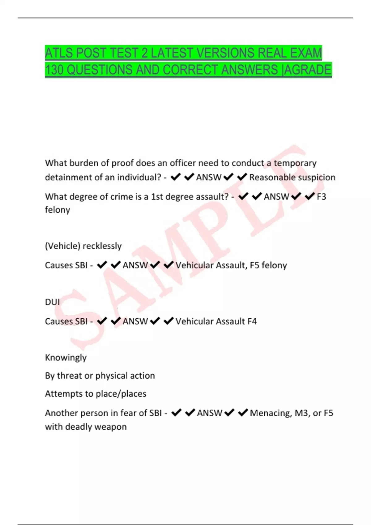 ATLS POST TEST 2 LATEST VERSIONS REAL EXAM 130 QUESTIONS AND CORRECT ANSWERS |AGRADE